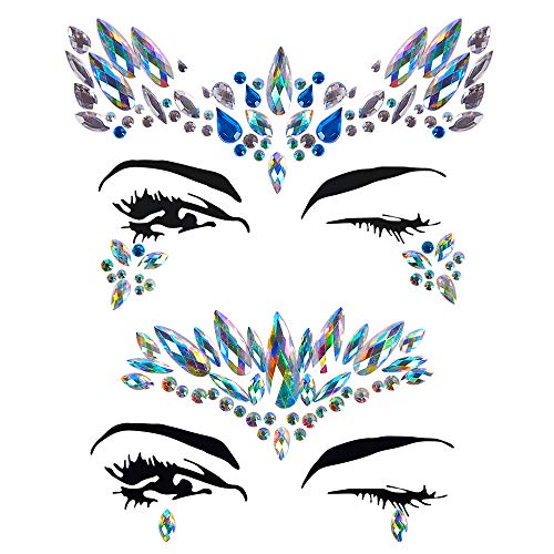 Halloween Face jewels festival Women Mermaid Face Gems Glitter 6 Sets Rhinestone Rave Festival Face Jewels,Crystals Face…