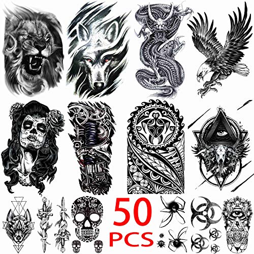 💕【Size】–50 Sheets Temporary Tattoo Including 8 Sheets Large Size 21x15cm 7.8″x5.9″, 42 Sheets Cute Small Size 10x6CM 4.1″x2.3″ Temporary Tattoos For Kids Girls Children. 【Long Lasting Tattoos】 Waterproof And Lasts Long Body From 3-5 Days. Realistic Temporary Tattoos For Women Lion Skull Skeleton King Gangster Robot Arm Moon Star Lotus Feather Wolf Whale Sunflower Infinity Anchor Pirate Compass Spider Cross Angel Wings Sword Rose Flower Turtle Totem Maori Lovely Paws Tribal Eye Summer Style.