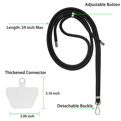 The thickened connector can fit almost full coverage phone case, very durable and easy to put on or take off, keep the phone stay around your neck safely.