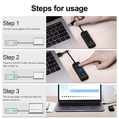 【ON/OFF Switch】 Different from other mouse jiggler on the market, Vaydeer mouse jiggler is more convenient to use thanks to the exclusive ON/OFF switch. Just one simple press, the mouse jiggler will start to work or stop working, protecting the USB ports of your computer from the damage caused by plugging and unplugging constantly.