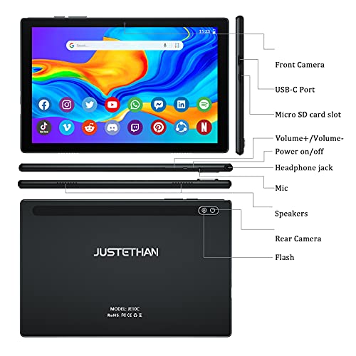 Justethan Tablet 10 inch, Android 10.0 PC 32GB Storage Expanded to 128GB, WiFi Tablets with 8MP Rear Camera, Quad-Core…