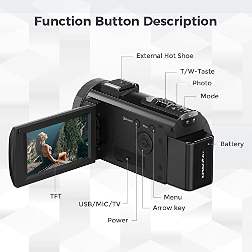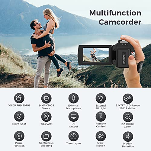 IEBRT Video Camera Camcorder, Digital Camera Recorder Full HD 1080P 30FPS 24MP 3.0 Inch 270 Degree Vlogging Camera for…