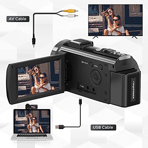 【Multi-function】The camera supports pause function, interval recording, low-speed recording, motion detection, time-lapse recording, Selfie and continuous shooting. This lightweight, compact and easy-to-use digital camcorder is equipped with high-quality materials and advanced technology to record high-quality images. It is a good choice for YouTube and Vlogging. You can download videos to your computer via a USB cable, and then edit them before uploading to social media.