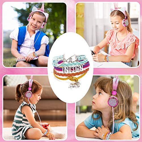 [Let Your Child Be The Brightest One]-After rigorous market research and data analysis, we added the unicorn element on the headset that is very popular among children nowadays. The unicorn children’s headset has a cute appearance, and it is very practical, in addition to a colorful bracelet, so that children can enjoy audio books and music through the headphones and happily complete their homework.
