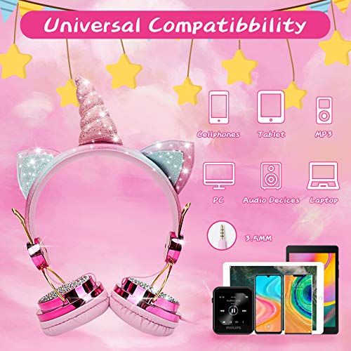 Kandice Kids Headphones, Unicorn Wired Headset with Microphone Adjustable Headband, 3.5mm Jack and HD Sound Over Ear…