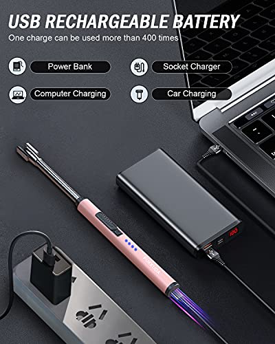 【USB Rechargeable】- No need to refill the lighter ever! Built-in large capacity battery, and power indicator lights to remind you when it should be charged. The portable USB cable can connect to power source such as computers, power bank and etc.