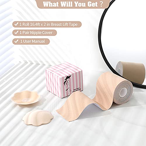 Boob Tape and 2 Pcs Petal Backless Nipple Cover Set, Breathable Breast Lift Tape Boobytape for Breast Lift Athletic Tape…
