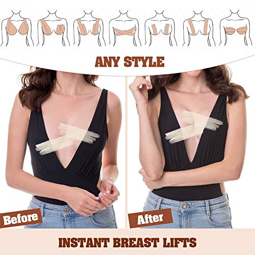 Wide Application: Perfect for backless/strapless dresses, t-shirts, halter tops, wedding gowns, sports bras, swimsuits. Friendly to A-E cups, the bra tape will lift and push up even the heaviest breasts to achieve the boob shape you want.