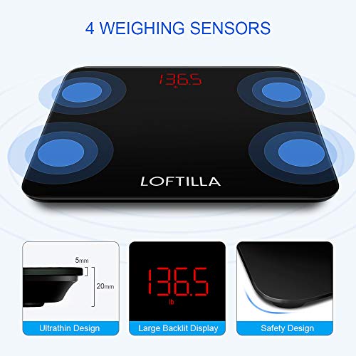Bathroom Scale for Body Weight: Connect and Sync with smartphone “Loftilla Plus” App via Bluetooth to track your weight and BMI trends. Support popular fitness Apps like Fitbit, Apple Health and Google Fit