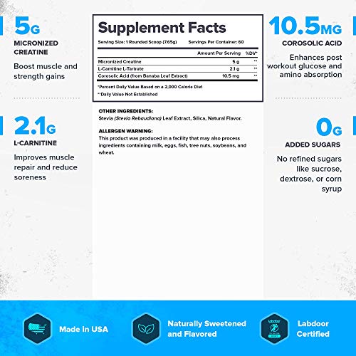BOOSTS MUSCLE & STRENGTH GAIN. With this post workout recovery drink, you’re going to gain more muscle and strength after very workout thanks to clinically effective doses of creatine powder and L carnitine L tartrate.