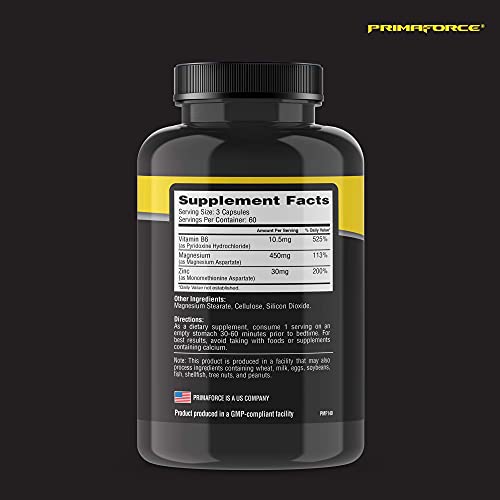 SUPPORTS MUSCLE RECOVERY: With optimal ratios of zinc (30mg), magnesium (450 mg) and vitamin B6 (10.5 mg), PrimaForce ZMA replaces essential minerals depleted during workouts to accelerate recovery