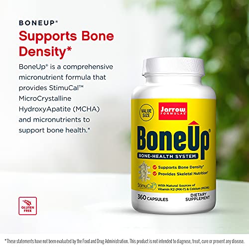 BoneUp is a comprehensive micronutrient formula that provides StimuCal MicroCrystalline HydroxyApatite (MCHA) and micronutrients to support bone health, bone density, and skeletal nutrition. StimuCal MCHA is a natural source of calcium shown to support bone mineral density better than calcium carbonate. StimuCal also provides bone proteins, including type I collagen, which has been shown to support bone health. Vitamins D3 and K2 (as MK-7) are included to support calcium deposition into bones. Adequate calcium and vitamin D as part of a healthful diet, along with physical activity, may reduce osteoporosis risk later in life.