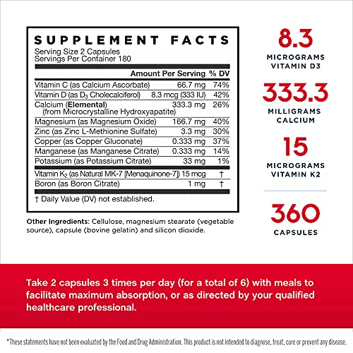 Natural Sources: Vitamins D3 and K2 (as MK-7) are included to support calcium deposition into bones; Adequate calcium and vitamin D as part of a healthful diet, along with physical activity, may reduce osteoporosis risk later in life