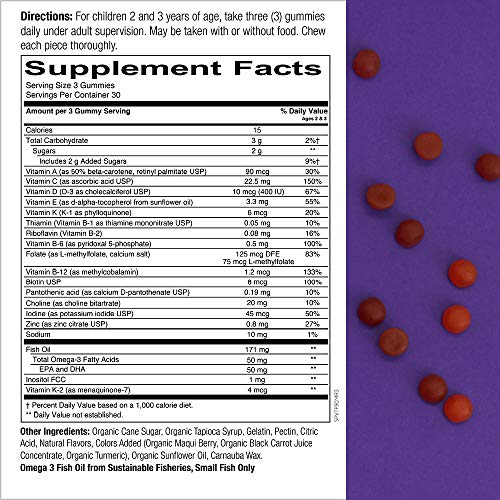 For children 2 and 3 years of age, take three (3) gummies daily under adult supervision. May be taken with or without food.