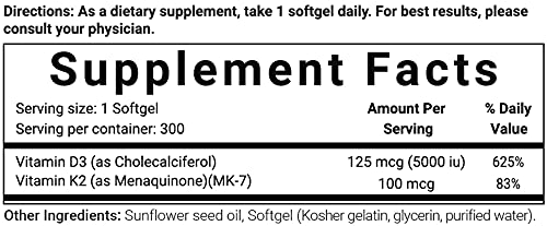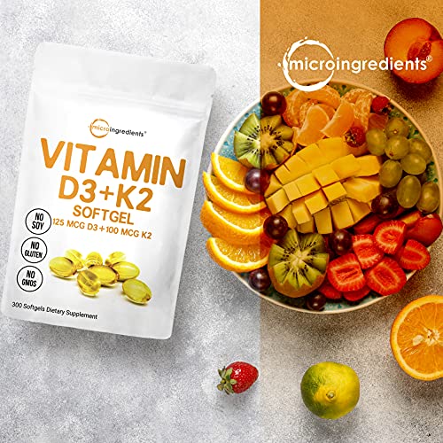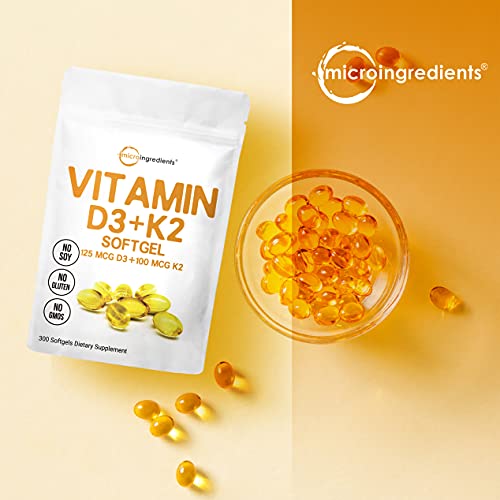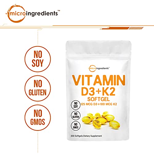 Micro Ingredients Vitamin D3 5000 IU with K2 100 mcg, 300 Soft-Gels | K2 MK-7 with D3 Vitamin Supplement, 2 in 1 Support…