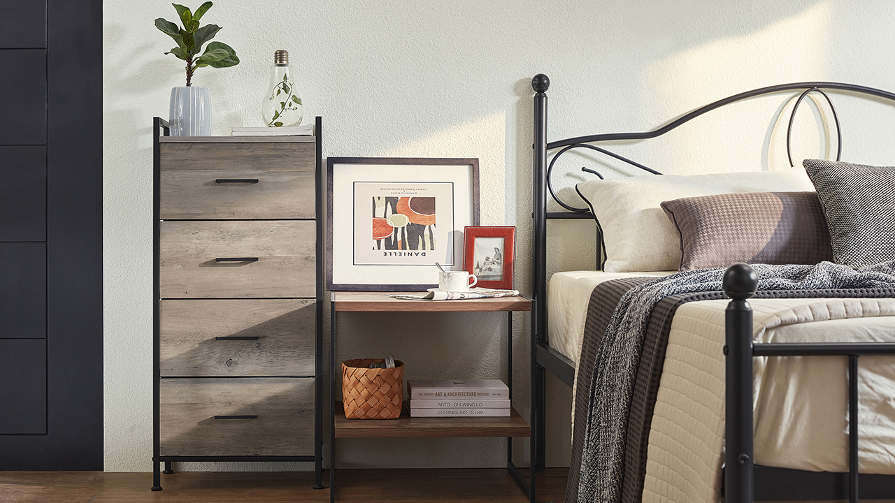 【Sturdy Structure】 – Water resistant wood top with natural wood texture, pairing with thicker metal frame, provide stability for the dresser, and for a long service life.