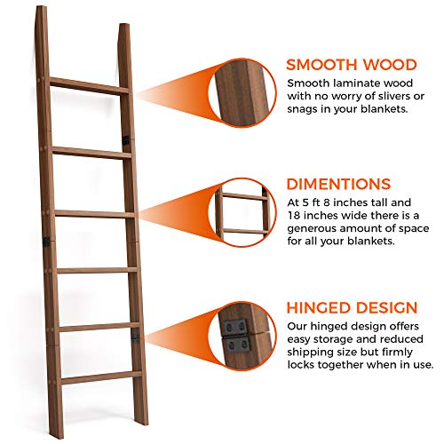 RELODECOR 6-Foot Wall Leaning Blanket Ladder, Laminate Snag Free Construction (Brown) Farmhouse Home Decor, Decorative…