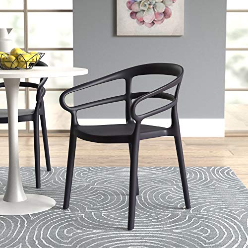 Amazon Basics Dark Grey, Curved Back Dining Chair-Set of 2, Premium Plastic