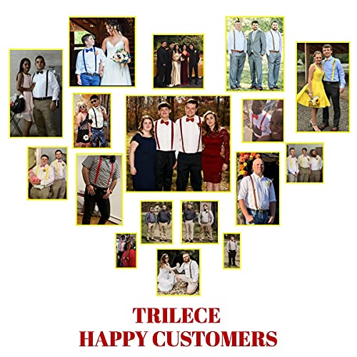 ✅ UNIQUE DESIGN: Trilece Suspenders Smooth edge shape braces provide a relaxed snug fit that wouldn’t dig into your skin or damage your outfit. Synthetic leather crosspatch gives a solid look and strong hold up for that special day. Updated heavy-duty clips superbly provide that hold so your pants, shorts, or trousers will never fall off.