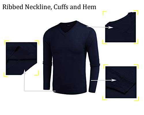 Coofandy Men Casual V Neck Sweater Ribbed Knit Slim Fit Long Sleeve Pullover Top