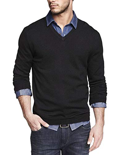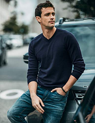 Classic Looking — With the V neck, long sleeve, solid color, ribbed collar, cuffs and hemline, this men’s knitted pullover is slim fit and never outdated, creating you modern and classic looking in you daily life.