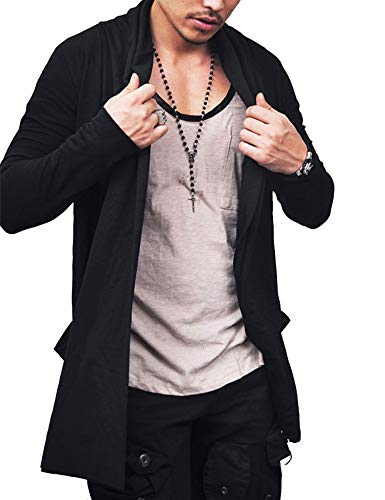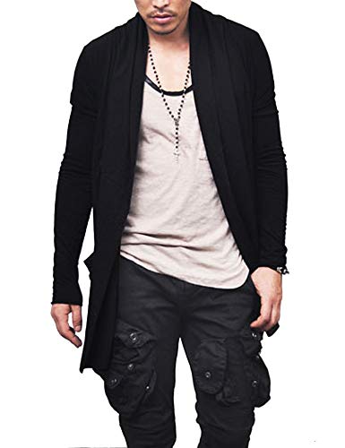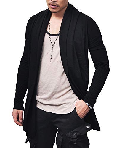 COOFANDY Men’s Ruffle Shawl Collar Cardigan Open Front Lightweight Long Length Drape Cape Overcoat with Pockets