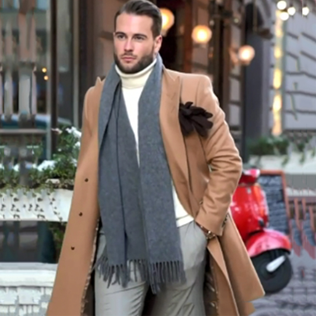 You can pair this cable-knit turtleneck sweater with sport coat or leather blazer/jacket for warm wear; Or you can just mary this chunky knit sweater with navy blue chino pants to create a smart casual look.