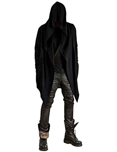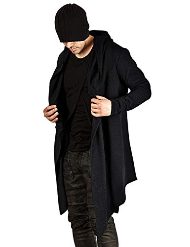 Poriff Mens Draped Cardigans Long Sleeve with Hooded Pockets Long Shawl Ruffle