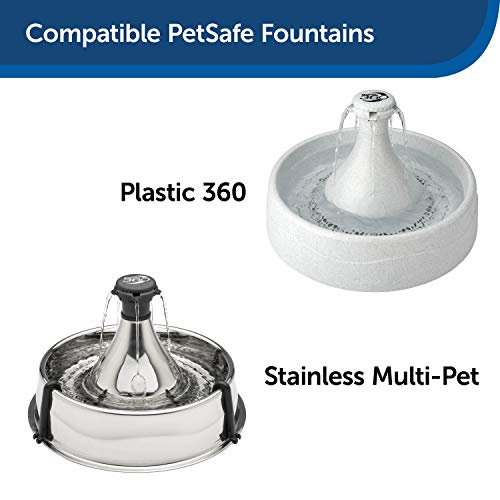 The PetSafe Drinkwell 360 Replacement Filters are designed to fit the PetSafe Drinkwell Stainless Multi-Pet and 360 Pet Fountains. The activated carbon filter refreshes the water. The granulated carbon is made from coconut shells for extended filtration. Replace filter every 2 to 4 weeks.