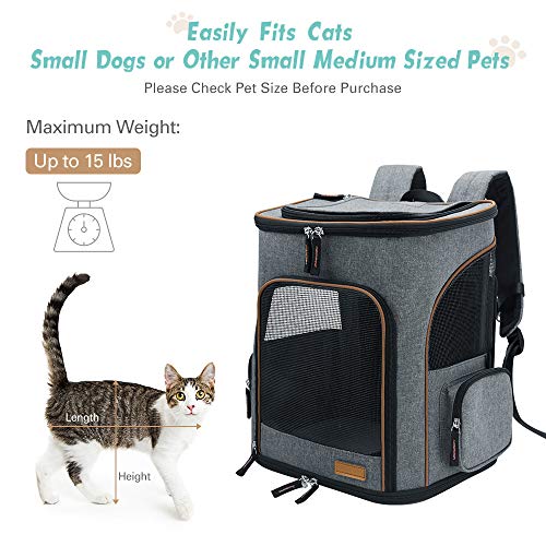 Large Capacity: The cat backpack carrier measures approximately 30 x 26 x 43 (LWH). Perfect for dogs and cats up to 15 pounds. Easily fits cats, small dogs, and most other small / medium-sized pets. We also add 2 side pockets to store pet supplies.