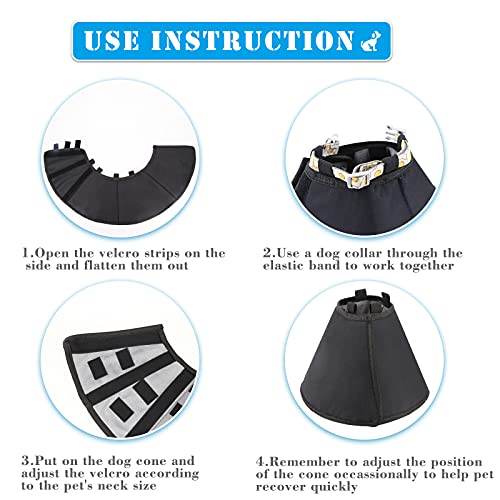 【Safe Design】The dog recovery cone has a soft velcro design to make it easier to put on, the elastic band design which can use with dog collar without choking and falling off.