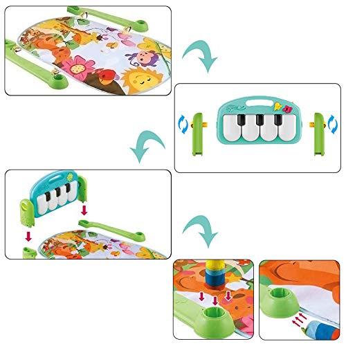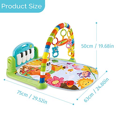 【Attention – Always Here For You】NOTICE: This Baby Activity Mat Is Being Upgraded Recently. The Product You Receive May Be Partly Different With The Pictures, e.g., The Pattern Of The Mat; The Color Of The Rings. Please Be Aware. Intended as baby toys for newborns, baby boys and girls Ages. The baby musical piano gym needs 3*1.5V AA batteries (not included); strong alkaline batteries are not recommended. Don’t hesitate to get one thanks to our great after-sales service.