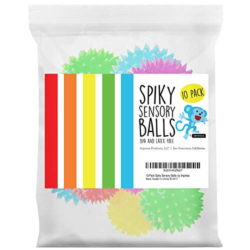 10-Pack of Spiky Sensory Balls – Squeezy and Bouncy Fidget Toys / Sensory Toys – BPA/Phthalate/Latex-Free