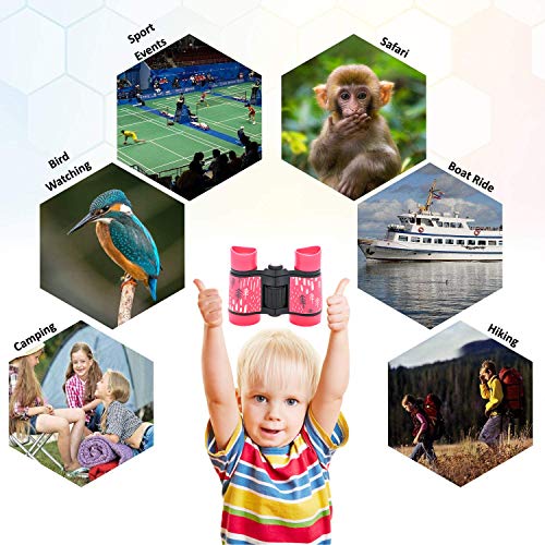 Binoculars for Kids, Best Gifts Toy Binoculars for 3-12 Years Boys Girls and Toddler,High-Resolution Real Optics Rubber Kids Binoculars Shockproof Folding for Travel, Camping, Birding (Pink)