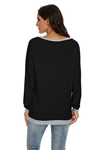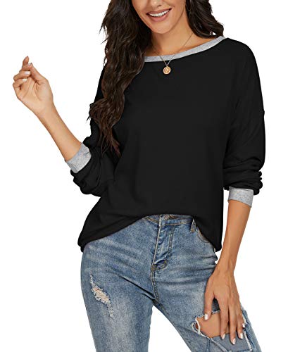 JINKESI Women’s Casual Long Sleeve Color Block Round Neck Loose Fit Blouses T Shirts Sweatshirts Pullover Tops Shirts