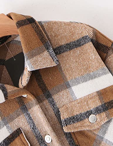 Tanming Womens Flannel Plaid Shacket Wool Blend Button Down Shirt Fall Fashion Jacket