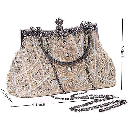 BABEYOND 1920s Flapper Clutch Gatsby Pearl Handbag Roaring 20s Evening Clutch Beaded Bag 1920s Gatsby Costume Accessories