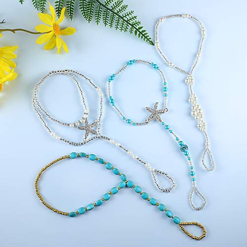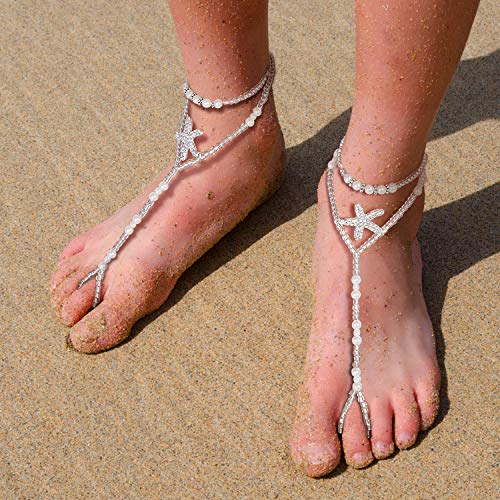 Beach Barefoot Sandals Bohemia Anklet Sandals Starfish Ankle Chain Beaded Elastic Foot Jewelry for Women Lady (Style Set…