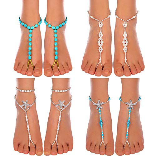 What you receive: coming with 4 pairs of different styles of beaded barefoot sandals, 2 colors, meeting your different decoration and matching needs