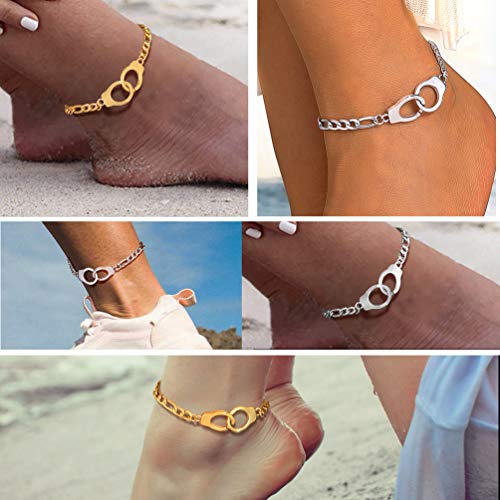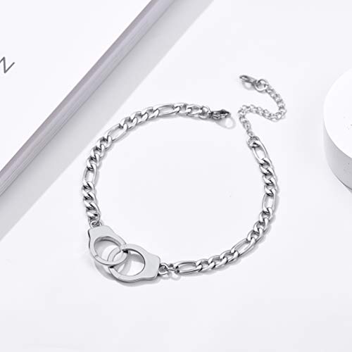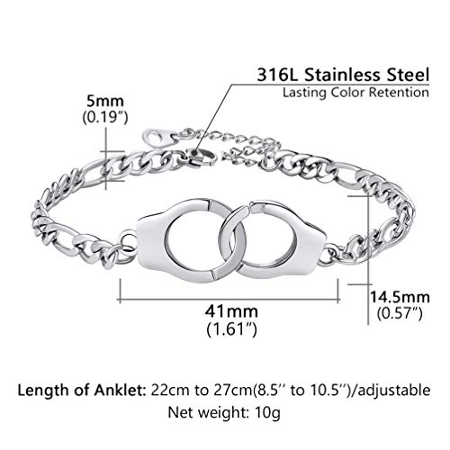 PROSTEEL Trendy Handcuffs Design/Customize Words Ankle Bracelet for Men Women Teens, 316L Stainless Steel Anklets Silver…