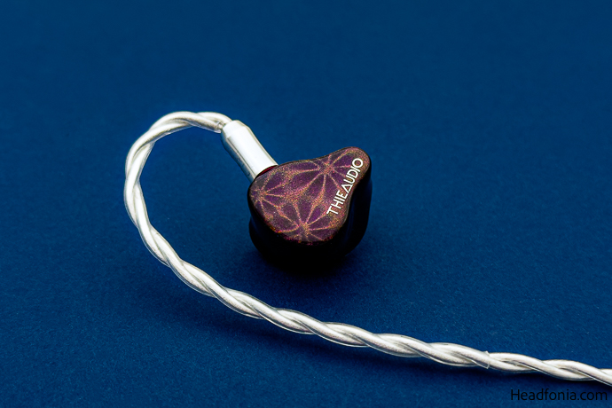 The build quality is excellent; I noticed no manufacturing flaws, and the connection between the nozzle, main body, and other joints appears seamless. The design of the faceplate is striking. It is decorated with a unique pattern in shades of purple, reminiscent of a sea star. As usual with all the other IEMs from the brand, the ThieAudio name can be found in chrome lettering on both faceplates. There is also a metal mesh-covered air-pressure vent facing the front (when worn), most likely for the isobaric enclosure inside. Overall, Hype 2 has an aesthetic design and feels durable with its medical-grade UV resin shell.